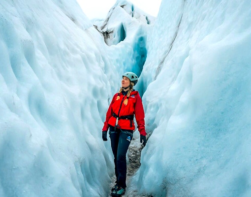 Adéntrate en la grieta de un glaciar para contemplar de cerca su gélido interior.
