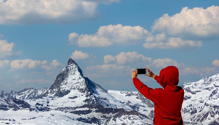 Matterhorn o wysokości 4 478 m n.p.m. jest jedną z najczęściej fotografowanych gór, która swoim piramidalnym kształtem graniczy ze Szwajcarią i Włochami.