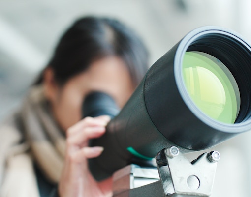 Użyj stałych teleskopów, aby powiększyć Mont Blanc, Dufourspitze na Monte Rosa i inne czterotysięczniki otaczające Matterhorn.
